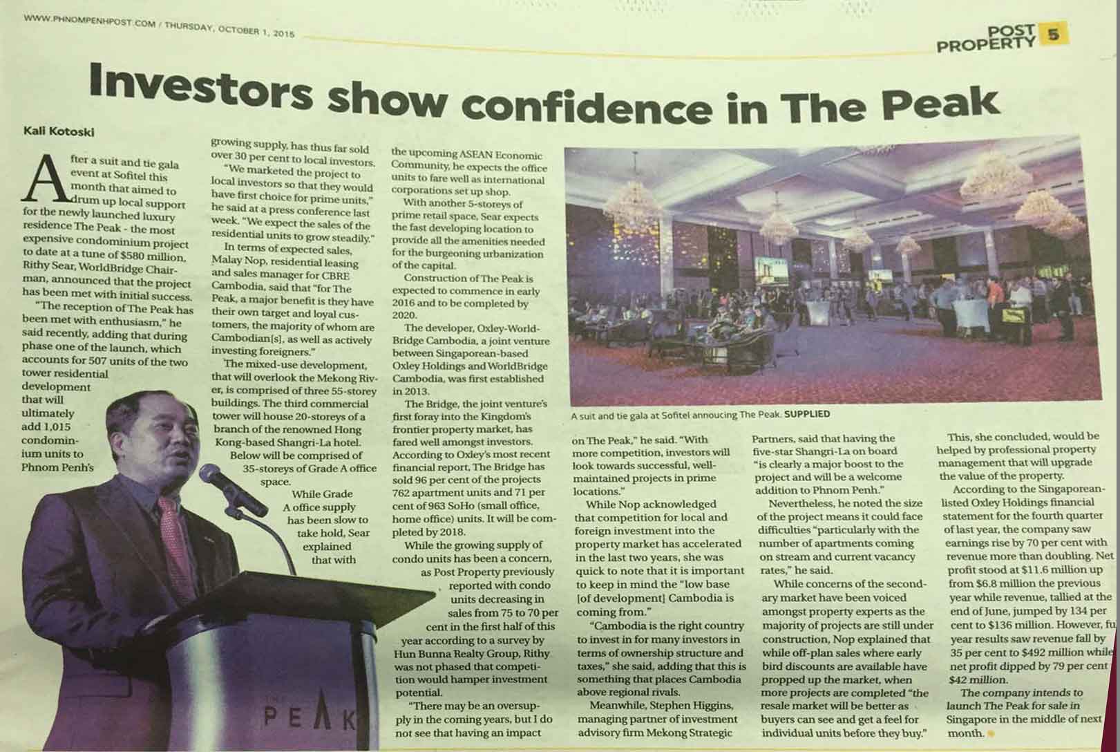 Phnom Penh Post (Eng)01 oct 2015 The Peak VVIP-Event